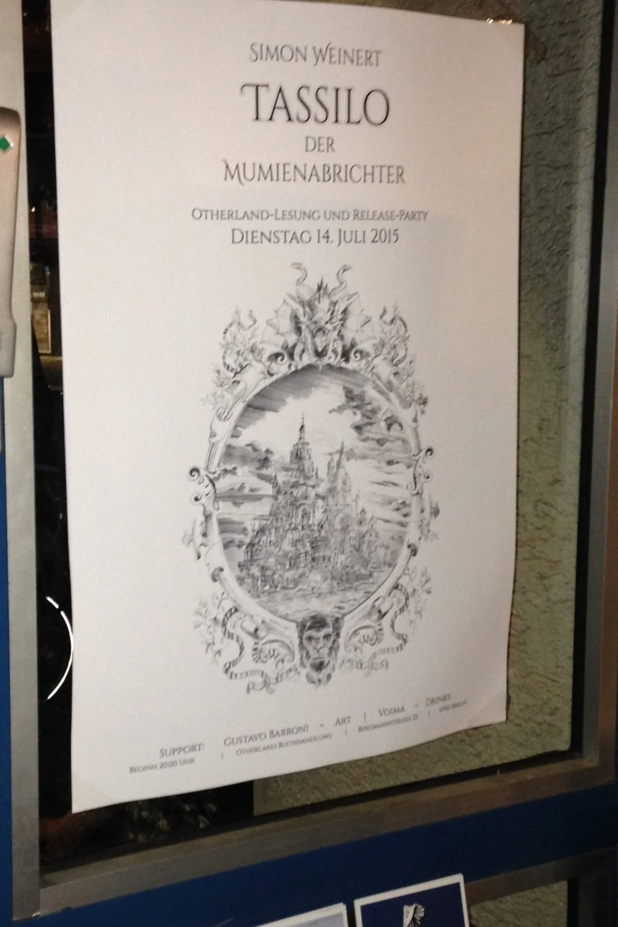 A novel by Simon Weinert, where I completely designed, painted and illustrated from the cover to the back cover and internal illustrations of the book; as well flyers and poster for the book presentation. Every detail was coordinated with the author, print house and editorial.
